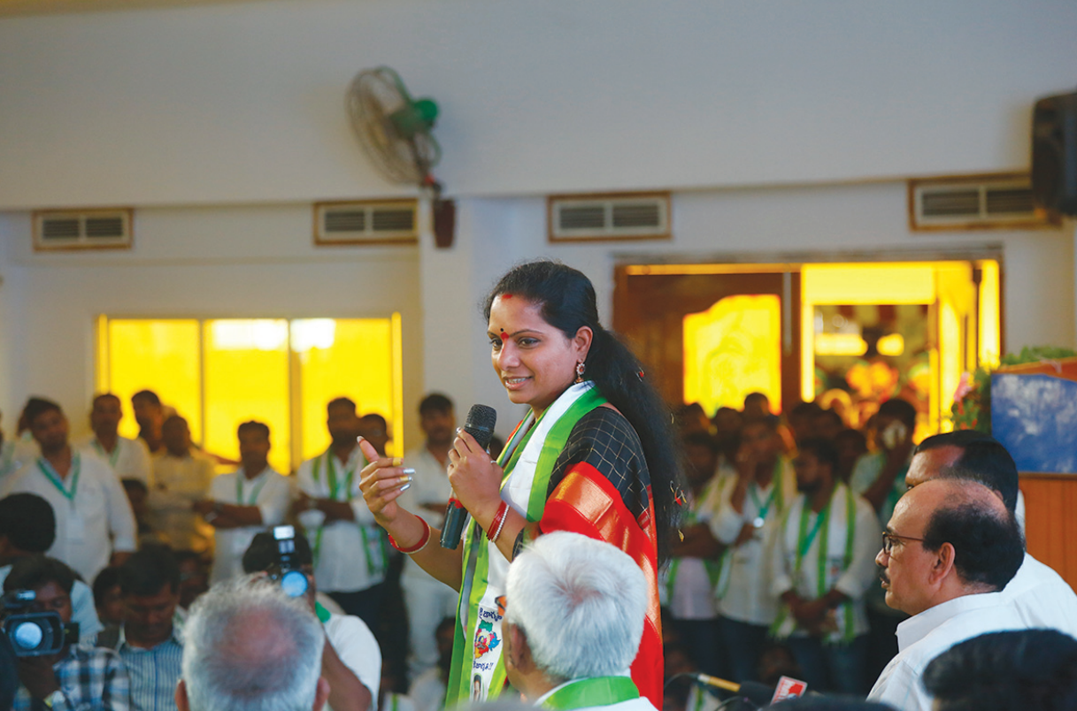 Kalvakuntla Kavitha is an Indian politician who serving as a Member of the Legislative Council from Nizamabad since 2020. Earlier she served as a Member of Parliament from Nizamabad Lok Sabha Constituency from 2014 to 2019. She is the daughter of former Chief Minister of Telangana, K. Chandrasekhar Rao.