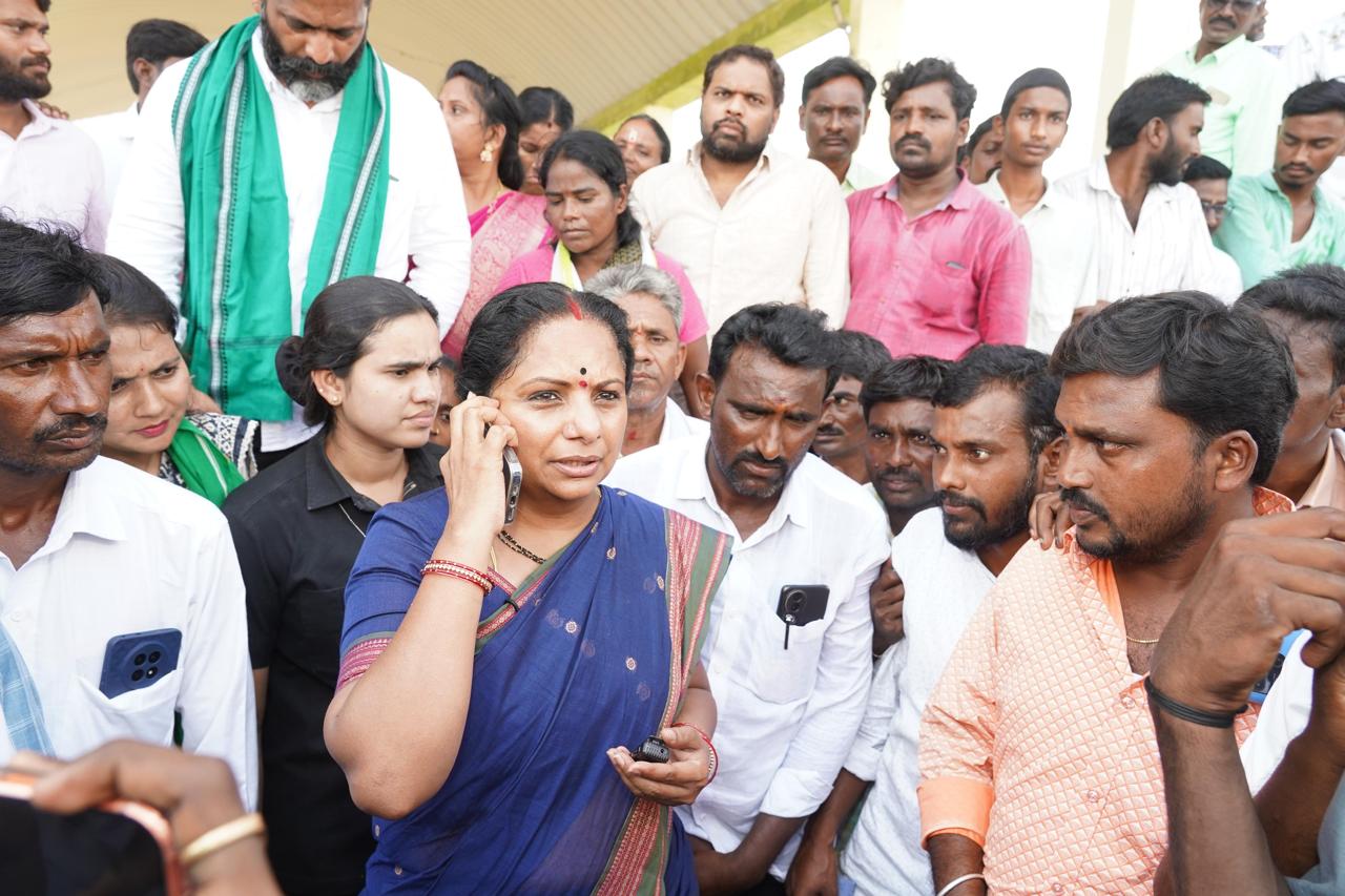 Concluding her tour, Kavitha visited Ruyyadi village in Talamadugu mandal, where she consoled the family of farmer Premender, who died by suicide due to financial distress. Calling the incident painful, she urged the government to take strong preventive measures to stop further farmer suicides.