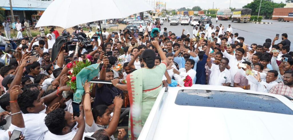 ఇందల్వాయి టోల్ ప్లాజా వద్ద తెలంగాణ జాగృతి నాయకులు కవిత గారికి ఘన స్వాగతం పలికారు.