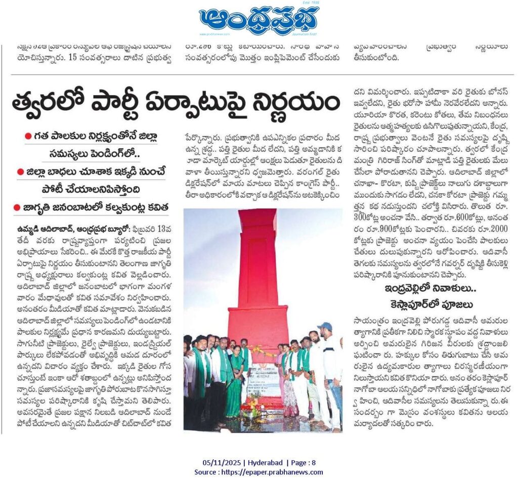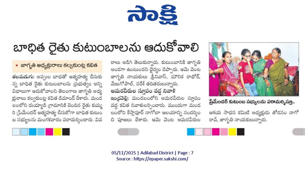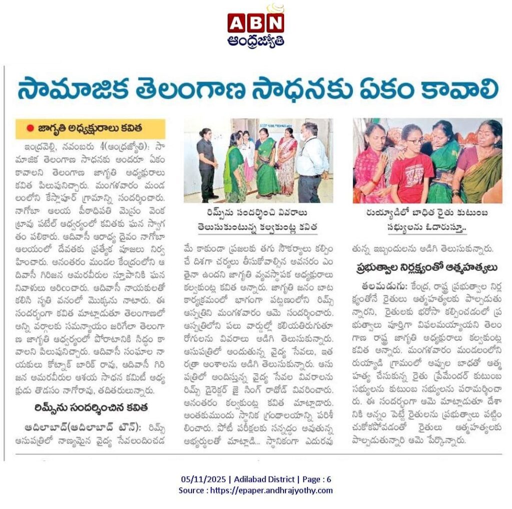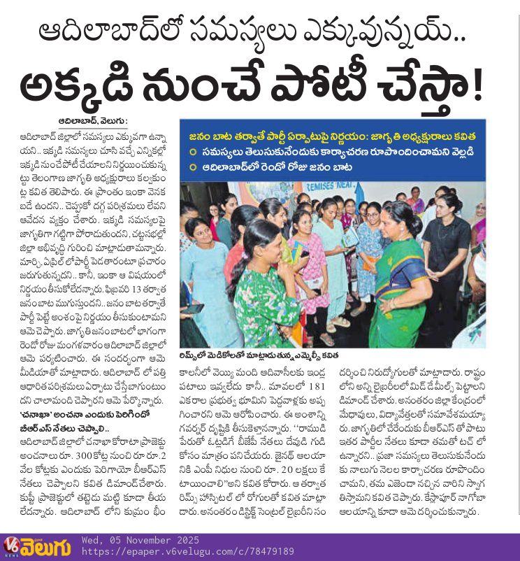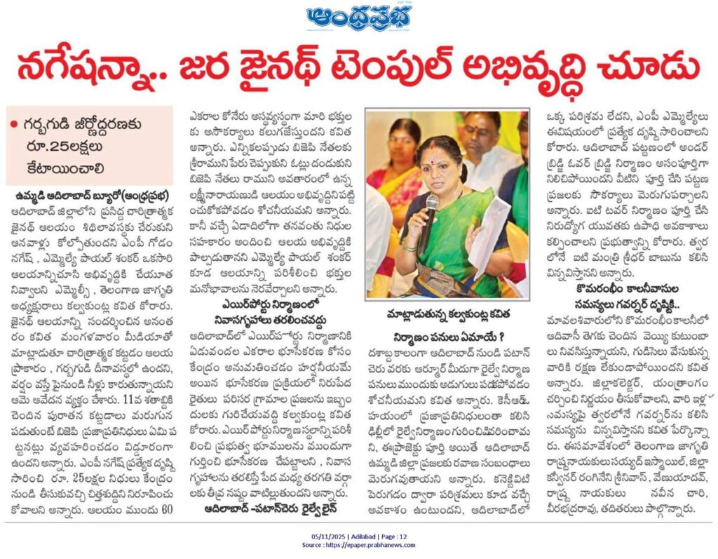 News on Jagruthi admin 5-11-2025 Jagruthi Janam Baata – Adilabad Share: Jagruthi Janam Baata – Karimnagar Kalvakuntla Kavitha Visits Limbadri Lakshmi Narasimha Swamy Temple, Nizamabad