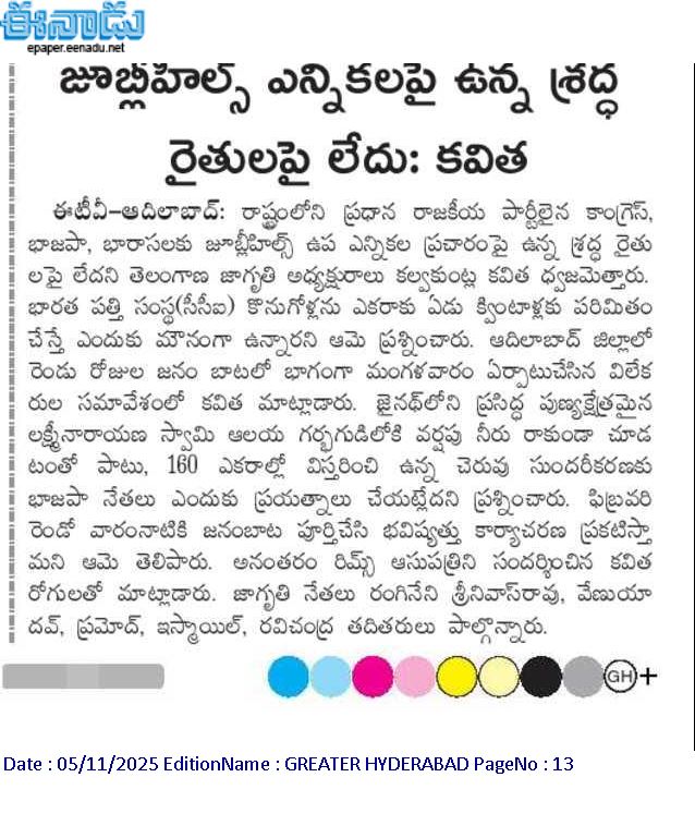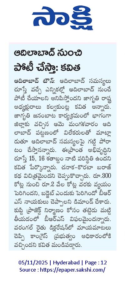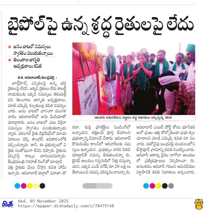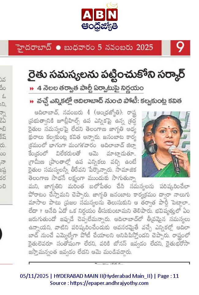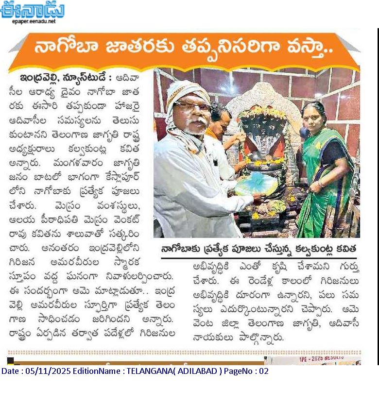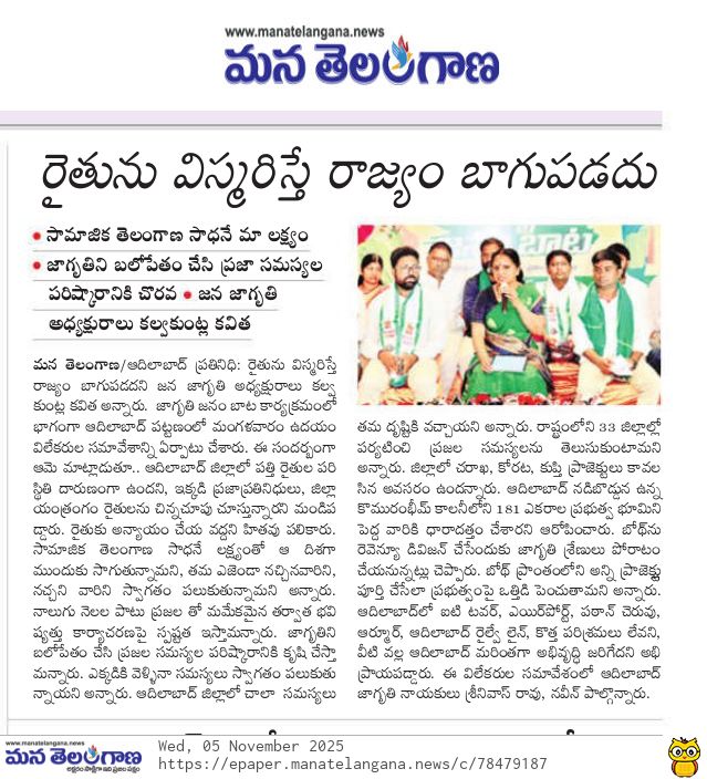 News on Jagruthi admin 5-11-2025 Jagruthi Janam Baata – Adilabad Share: Jagruthi Janam Baata – Karimnagar Kalvakuntla Kavitha Visits Limbadri Lakshmi Narasimha Swamy Temple, Nizamabad