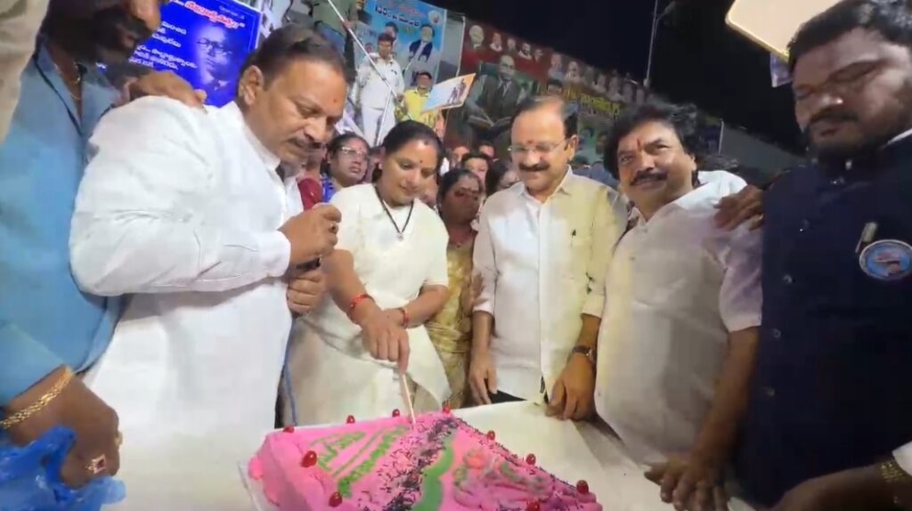 లిబర్టీ సర్కిల్ లో అర్ధరాత్రి అంబేద్కర్ జయంతి వేడుకల్లో పాల్గొన్న కవిత