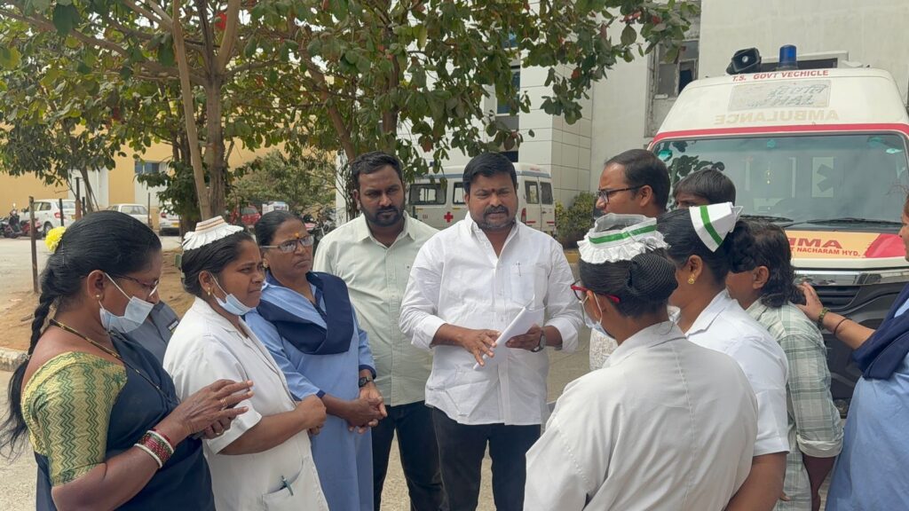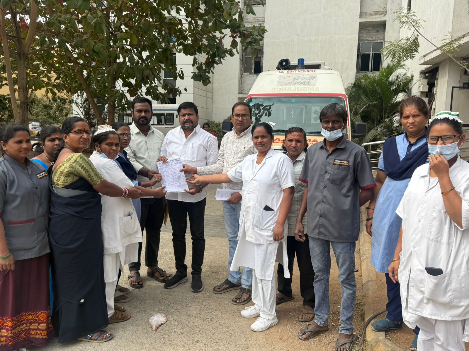 తెలంగాణ జాగృతి ఔట్ సోర్సింగ్ ఉద్యోగుల అధ్యయన కమిటి సభ్యులు డాక్టర్ నలమాస శ్రీకాంత్ గౌడ్, ఐదా ప్రశాంత్ సోమవారం క్షేత్ర స్థాయిలో ఔట్ సోర్సింగ్ ఉద్యోగులు ఎదుర్కొంటున్న సమస్యలను పరిశీలించటానికి నాచారం ఈఎస్సై ఆసుపత్రిని సందర్శించారు. ఈఎస్సై ఆసుపత్రి లో అనేక డిపార్ట్మెంట్లలో ఔట్ సోర్సింగ్ ఉద్యోగులు పనిచేస్తున్నారు. ఆసుపత్రి సెక్యూరిటీ నుండి వార్డ్ బాయ్ వరకు, స్టాఫ్ నర్సులు, ల్యాబ్ అసిస్టెంట్లు, ఎక్స్ రే, టెక్నికల్ డిపార్ట్మెంట్లలో అనేకమంది వారి సేవలను అందిస్తున్నారు. వీరికి ఎనిమిది నెలలుగా ఎజెన్సీలు జీతాలు ఇవ్వటం లేదు. Go నంబర్ 60 కింద పనిచేస్తున్న వీరంతా జీతాలు లేక ఇంటి కిరాయిలు సైతం కట్టుకోలేని దుస్థితిని జాగృతి అధ్యయన బృందానికి తెలియజేసారు. ఇటీవల శాసన మండలిలో మా సమస్యలను లేవనేత్తిన కల్వకుంట్ల కవితక్కకు ఉద్యోగులంతా కృతజ్ఞతలు తెలిపారు. వారి సమస్యల కోసం అధ్యయన కమిటీ వేసిన కవితక్కకు ఋణపడి ఉంటామని వారు తెలియజేశారు.