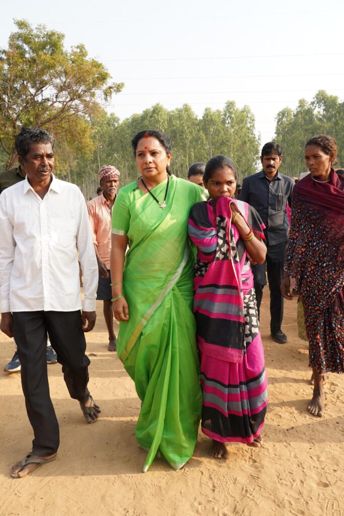 వీళ్లకు ఆర్ అండ్ ఆర్ ప్యాకేజీతో పాటు ఇళ్లు కట్టి ఇవ్వాలని డిమాండ్ చేస్తున్నా. ఇప్పుడు వాళ్లు పనిచేసుకునే చోట వారికి హక్కులు కల్పించాలి. ఏమీ చేయకుండా 72 కుటుంబాలను రోడ్డు పై వేయటం మంచిది కాదు. రాష్ట్రపతి ముర్ము ఇప్పుడు హైదరాబాద్ లోనే ఉన్నారు. అవసరమైతే వారిని కూడా కలిసి ఈ బిడ్డల బాధలు తీర్చామని కోరుతాం. రాష్ట్రపతి, గవర్నర్ వద్దకు వెళ్లి గిరిజన బిడ్డలకు న్యాయం జరిగేలా చేస్తాం. ఈ అడవి గిరిజన బిడ్డలది. వారి హక్కులను కాలరాసే హక్కు ప్రభుత్వానికి లేదు. వీరి సమస్యకు పర్మినెంట్ సొల్యుషన్ రావాలి. దానికోసం జాగృతి తరఫున ఫైట్ చేస్తాం. ఇక్కడ కేవలం 17 మంది మాత్రమే స్కూల్ కు వెళ్తున్నారు. గతంలో ఇక్కడ ఉన్న స్కూల్ ను తీసేశారు. ఇలా చెప్పుకుంటూ పోతే చాలా బాధలు ఉన్నాయి. ఈ సమస్యలపై సింగరేణి యాజమాన్యం రాష్ట్ర ప్రభుత్వం స్పందించాలని హెచ్చరిస్తున్నాం. “
